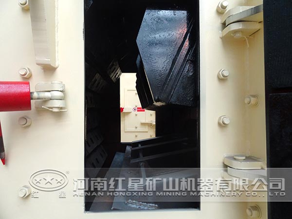喂入機內的物料,在轉子回轉錘擊區受到板錘的打擊,將被高速拋向反擊板,再次地受到沖擊,然后又被反擊板反彈到板錘上,繼續被擊打,在往返的途中,物料間還會發生相互撞擊作用,上述過程反復進行。這樣,由于物料不停受到板錘的打擊、反擊板的沖擊還有物料相互之間的碰撞,因此產生裂縫、松散而致粉碎,同時,物料粒度小于反擊板與板錘之間的縫隙時將被排出。