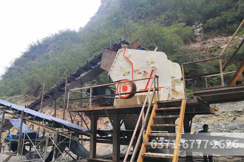 單轉子反擊式破碎機的構造,料塊從進料口喂入,為了防止料塊在破碎時飛出,在進料口進料方向裝有鏈幕。喂入的料塊落在篦條篩的上面,細小料塊通過篦縫落到機殼的下部,大塊的物料沿著篩面滑到轉子上。在轉子的圓周上固定安裝著有一定高度的板錘,轉子由電動機經V型皮帶帶動作高速轉動。落在轉子上面的料塊受到高速旋轉的板錘的沖擊,獲得動能后以高速向反擊板撞擊,接著又從反擊板上反彈回來,在破碎區中又同被轉子拋出的物料相碰撞。由 條篩、轉子、反擊板以及鏈幕所組成的空間稱為沖擊區;由反擊板與轉子之間組成的空間是第二沖擊區。物料在沖擊區受到互相沖擊而破碎后,繼而又進入第二沖擊區受到再次的沖擊粉碎。破碎后的物料經機殼下部的出料口卸出。 參考資料: