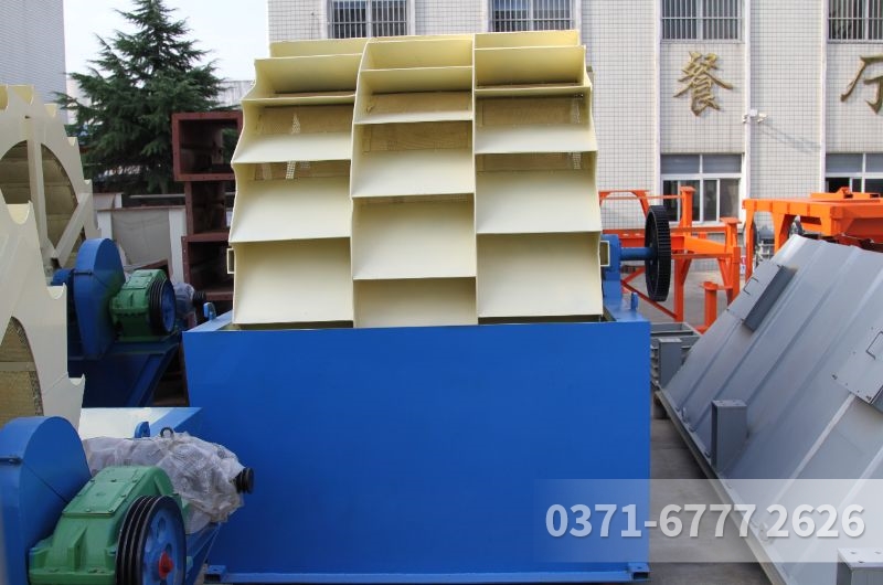 輪斗式洗砂機是以輔助制砂生產為主,根據洗砂機配備葉輪的個數,可分為單葉輪和雙葉輪兩種,與其他的水洗砂設備不同,當輪斗式洗砂機工作時,是利用葉輪的翻動和水流的流動來帶走雜質和比重小的異物,從而完成砂石清洗工作。