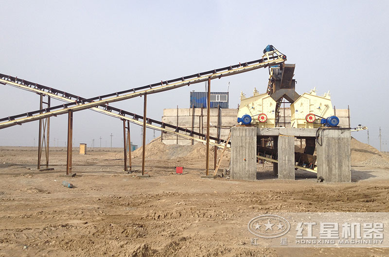 石料生產線主要由振動給料機、顎式破碎機、反擊式破碎機、振動篩、膠帶輸送機、集中電控等設備組成。為滿足客戶不同的加工需要,鄭州振鑫重工機械制造有限公司可為用戶配備圓錐式破碎機、除塵設備等。大塊石料經料倉由振動給料機均勻地送進鄂式破碎機進行粗碎,粗碎后的石料由膠帶輸送機送到反擊式破碎機進行進一步破碎;細碎后的石料由膠帶輸送機送進振動篩進行篩分,篩分出幾種不同規格的石子,滿足粒度要求的石子由成品膠帶輸送機送往成品料堆;不滿足粒度要求的石子由膠帶輸送機返料送到反擊式破碎機進行再次破碎,形成閉路多次循環。成品粒度可按照用戶的需求進行組合和分級,為保護環境,可配備輔助的除塵設備。