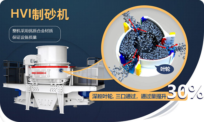 HVI制砂機是市場新款機型,進料尺寸35-55mm,產(chǎn)量70-585t/h“,破碎+制砂+整形”三合一,無論是成砂產(chǎn)量還是成品質(zhì)量,都有很大的提升,周邊中間兩種進料方式,靈活轉(zhuǎn)換,能夠準確掌控成品品級,砂石粒度均勻,沒有過多的針片狀物料;更讓人贊嘆的是拋料頭和周護板的設計能效延長使用壽命3-5倍,可為用戶節(jié)省大量使用成本。