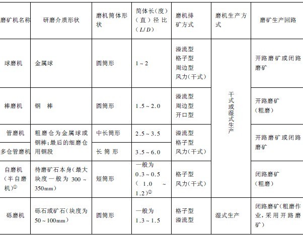 表1 圓筒型磨礦機的分類方法