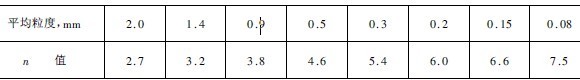 表3-4-7 n值與粒度的關系(形狀為多角形)