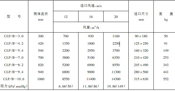 表3-4-10 CLP/B型旋風集塵器技術規格(一)