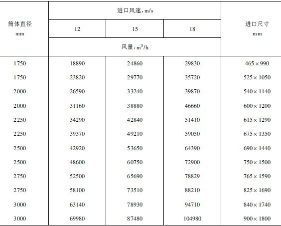 表3-4-9旋風集塵器氣流入口速度與分離粒度的關系